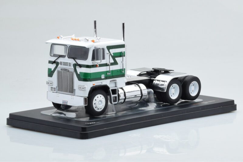 A 1:43 scale model measures approximately 10-12 cm (approximately 4-5 inches). The Freightliner FLA Branco Verde IXO 1:43 is perfect for display in a glass cabinet or on a shelf.