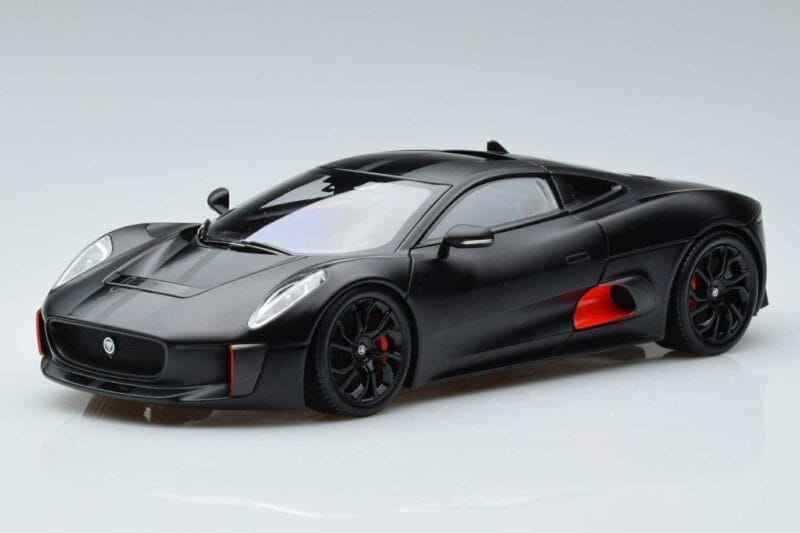The Jaguar C-X75 Preto Almost Real 1:18 is crafted from Metal. Die-cast zinc alloy body with detailed plastic parts, rubber tires, and high-quality paint finish. Die-cast models are known for their weight, durability, and realistic feel.