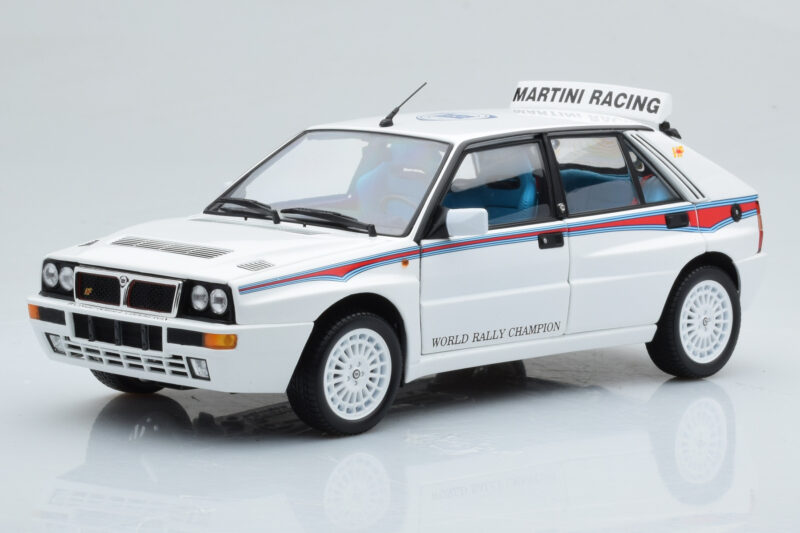 The Lancia Delta HF Integrale 6 Branco Kyosho 1:18 is crafted from Metal. Die-cast zinc alloy body with detailed plastic parts, rubber tires, and high-quality paint finish. Die-cast models are known for their weight, durability, and realistic feel.