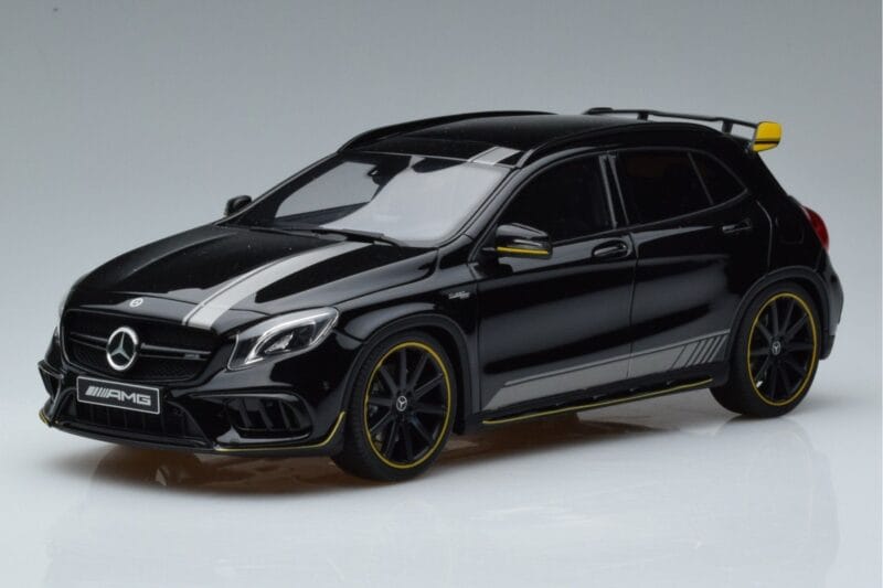 The Mercedes AMG GLA45 X156 Amarelo Night Edition GT Spirit 1:18 is crafted from Resina. High-quality resin with hand-painted details and limited production runs. Resin models offer exceptional detail and are prized by serious collectors for their craftsmanship.