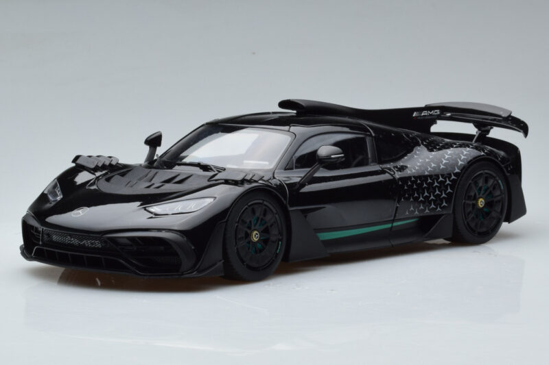 The Mercedes AMG One Preto NZG 1:18 is crafted from Metal. Die-cast zinc alloy body with detailed plastic parts, rubber tires, and high-quality paint finish. Die-cast models are known for their weight, durability, and realistic feel.