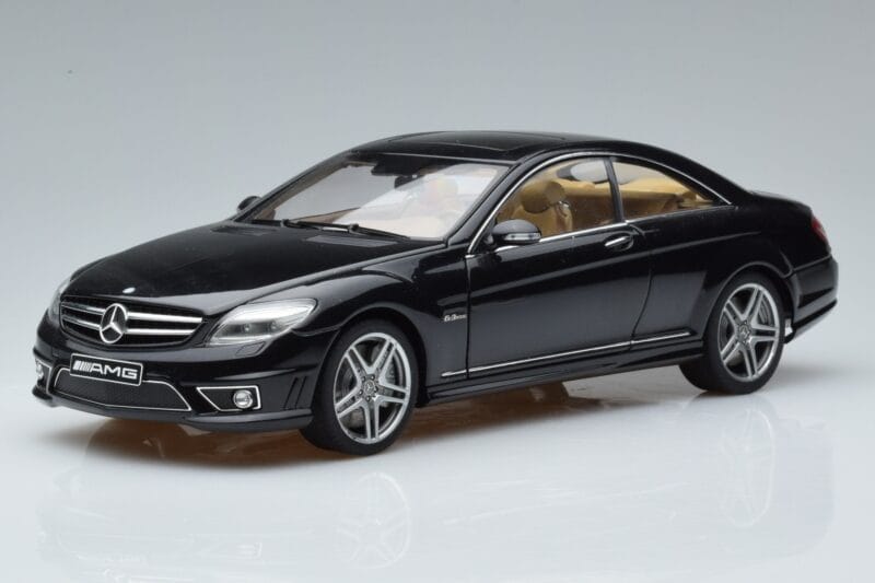 The Mercedes CL63 AMG C216 Preto AUTOart 1:18 is crafted from Metal. Die-cast zinc alloy body with detailed plastic parts, rubber tires, and high-quality paint finish. Die-cast models are known for their weight, durability, and realistic feel.