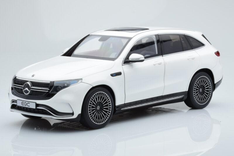 The Mercedes EQC 400 Diamond Branco NZG 1:18 is crafted from Metal. Die-cast zinc alloy body with detailed plastic parts, rubber tires, and high-quality paint finish. Die-cast models are known for their weight, durability, and realistic feel.
