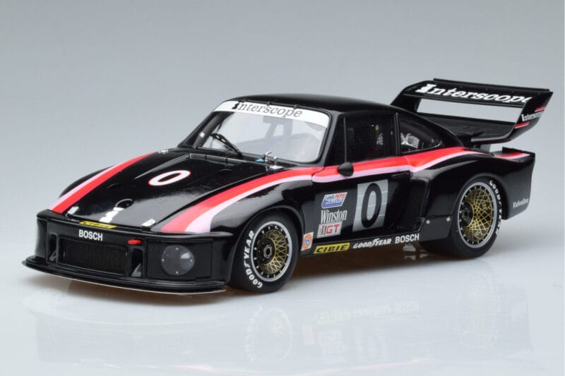A 1:18 scale model measures approximately 25-28 cm (approximately 10-11 inches). The Porsche 935 Turbo 24 Hours of Daytona 1979 Exoto 1:18 is perfect for display in a glass cabinet or on a shelf.