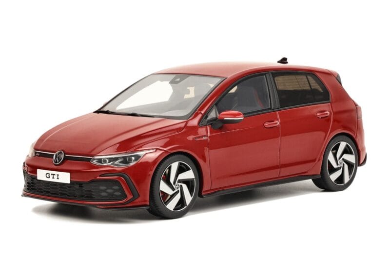 A 1:18 scale model measures approximately 25-28 cm (approximately 10-11 inches). The Volkswagen Golf GTI Mk8 Vermelho Otto 1:18 is perfect for display in a glass cabinet or on a shelf.
